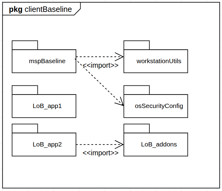 As in the example above, packages can be nested within other packages – much like online shopping orders, which contain smaller product boxes placed inside a larger shipping box. MSPs can deploy the large shipping box with the smaller packages inside, but updates to the individual software packages (like AutoCAD) can be managed individually after the initial deployment. This means that a browser delivered in the base software package can be updated independently of the other software in the base package by the package management system.